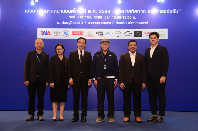 สมาคมผู้สื่อข่าวรถยนต์และรถจักรยานยนต์ไทย (สรยท.) จัดเสวนาในหัวข้อ “อนาคตอุตสาหกรรรมยานยนต์ไทยปี พ.ศ. 2569 : นโยบาย ทิศทางและการแข่งขัน” โดยมีวิทยากรผู้ทรงคุณวุฒิทั้งภาครัฐและเอกชน ประกอบด้วย นางสาวพธู ทองจุล ผู้อำนวยการกองนโยบายอุตสาหกรรมรายสาขา 1 สำนักงานเศรษฐกิจอุตสาหกรรม (สศอ.) กระทรวงอุตสาหกรรม, นายสุวัชร์ ศุภกาญจน์เดชากุล นายกสมาคมอุตสาหกรรมยานยนต์ไทย (TAIA) และรศ.ดร.ยศพงษ์ ลออนวล นายกสมาคมกิตติมศักดิ์ และที่ปรึกษา สมาคมยานยนต์ไฟฟ้าไทย (EVAT) ร่วมกันฉายภาพให้เห็นการแข่งแข่งของตลาดยานยนต์ในประเทศไทยตั้งแต่ต้นน้ำ กลางน้ำ ปลายน้ำ ที่จะเกิดขึ้นในปี 2569 ภายใต้เงื่อนไขทางภาษีต่างๆ จากภาครัฐที่กำลังจะเปลี่ยนแปลงและมีผลบังคับใช้ 1 มกราคม 2569 โดยมีนายสุรศักดิ์ จรินทร์ทอง นายกสมาคมผู้สื่อข่าวรถยนต์และรถจักรยานยนต์ไทย (สรยท.) หรือ Thai Automotive Journalists Association (TAJA) กล่าวรายงานถึงวัตถุประสงค์ของการจัดเสวนาในครั้งนี้ต่อ นายขวัญชัย ปภัสร์พงษ์ ประธานจัดงาน “มหกรรมยานยนต์ ครั้งที่ 42” ประธานในพิธี, วิทยากร และสื่อมวลชน ณ ห้องจูปิเตอร์ 4-5 อาคารชาเลนเจอร์ อิมแพ็ค เมืองทองธานี