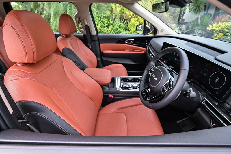 สำหรับเบาะที่นั่งของคนขับในรุ่น The new Kia Carnival HEV 7-seat Luxury ยังได้ติดตั้งระบบจดจำตำแหน่งเบาะนั่งและระบบ Welcome Seat สำหรับผู้ขับ เบาะนั่งคู่หน้าและเบาะนั่งแถวที่สองมาพร้อมระบบระบายอากาศและระบบอุ่นเบาะ สำหรับเบาะผู้โดยสารแถวสองเป็นแบบ Relaxation Seat ที่เปลี่ยนทุกการเดินทางให้เป็นความสะดวกสบายระดับเฟิร์สคลาสด้วยฟังก์ชันปรับเอนนอนที่สามารถปรับระดับได้เต็มรูปแบบ พร้อมเบาะรองขาแบบปรับไฟฟ้า มีโหมด One-touch Relaxation ที่สั่งงานด้วยการกดเพียงครั้งเดียวมอบความสบายให้กับผู้นั่งได้อย่างง่ายดาย สำหรับรุ่น The new Kia Carnival HEV 7-seat Premium