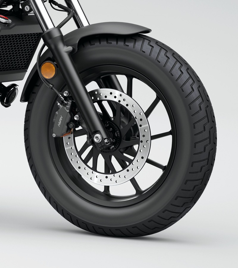 New Rebel 300 ใหม่ ตอบสนองทุกอัตราเร่ง บิดได้เต็มกำลังด้วยขุมพลังเครื่องยนต์ 300 ซีซี 1 สูบ เกียร์ 6 สปีด มาพร้อมถังน้ำมัน 11.2 ลิตร ดีไซน์ล้ำ ที่ได้แรงบันดาลใจจากทรงอากาศยาน ทำให้ท่วงท่าการนั่งคล่องตัว แอบแฝงความเท่แบบคลาสสิกสไตล์อเมริกันในทุกการขับขี่ สะดุดตาด้วยไฟหน้า และไฟเลี้ยวแบบ LED โชว์ความเป็นตัวตนอย่างมีสไตล์ โลดแล่นได้ทุกจุดหมายไม่ว่าใกล้หรือไกล บึกบึนด้วยยาง Fat Bobber Tires เอกลักษณ์เฉพาะสำหรับ Rebel โดยยางหน้าขนาด 130/90 ขอบ 16 และยางหลังขนาด 150/80 ขอบ 16 และระบบเบรก ABS ป้องกันการล็อกของล้อ เพิ่มความมั่นใจในการขับขี่ได้อย่างอิสระบนทุกสภาพถนน