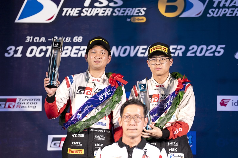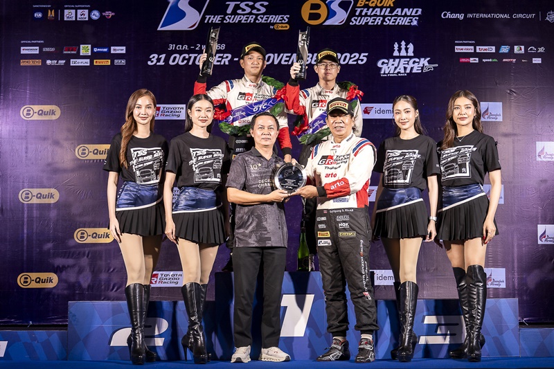 “TOYOTA GAZOO Racing Thailand” ทีมแข่งรถยิ่งใหญ่และประสบความสำเร็จอย่างสูงของวงการมอเตอร์สปอร์ต ภายใต้การสนับสนุนของบริษัท โตโยต้า มอเตอร์ ประเทศไทย จำกัด รุกฆาตปิดฤดูกาลความเร็ว “TSS The Super Series 2025” ผงาดชัยรับถ้วยแชมป์รุ่น GTM Am – GT4 Am- GTC นำทีมโดย สุทธิพงศ์ สมิตชาติ, ณัฐวุฒิ เจริญสุขะวัฒนะ, ณัฐพงษ์ ห่อทองคำ, มานัต กุละปาลานนท์, กรัณฑ์ ศุภพงษ์, อัครพงษ์ อัคนีนิโรธ, กฤษฎิ์ วสุรัตน์, ณ ดล วัฒนธรรม, นรรัศมิ์ อภิวาท, ทรงศักดิ์ กรศิริสืบสกุล และ ไอตั้น อัษฎาธร ในระหว่างวันที่ 31 ตุลาคม – 2 พฤศจิกายน 2568 ณ สนามช้าง อินเตอร์เนชั่นแนลเซอร์กิต จ.บุรีรัมย์