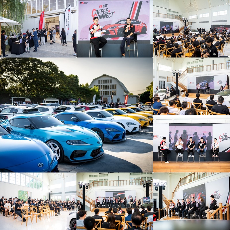 นายศุภกร รัตนวราหะ รองกรรมการผู้จัดการใหญ่ และนายณัทธร ศรีนิเวศน์ ผู้ช่วยกรรมการผู้จัดการใหญ่ บริษัท โตโยต้า มอเตอร์ ประเทศไทย จำกัด พร้อมด้วย เจ้าของ GR Garage และ GR Expertise จาก GR Garage ผู้แทนจำหน่ายรถยนต์ GR Performance อย่างเป็นทางการ ทั้ง 6 แห่งทั่วประเทศ ร่วมมอบประสบการณ์สุดเอ็กซ์คลูซีฟ กับการจัด GR Car Meet ครั้งแรก ในกิจกรรม GR Day : Coffee & Connect พร้อมกิจกรรมพิเศษอีกมากมาย ได้แก่ GR 86 Mini Press Talk และการร่วมแบ่งปันประสบการณ์การแข่งขันทางเรียบของ GR86 กับนักแข่งทีมโตโยต้า กาซู เรซซิ่ง ไทยแลนด์ นำโดย นายสุทธิพงศ์ สมิตชาติ ผู้อำนวยการทีมและนักแข่ง เมื่อวันที่ 7 ธันวาคม 2568 ณ Silooet House บางใหญ่