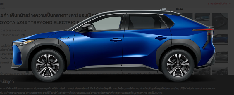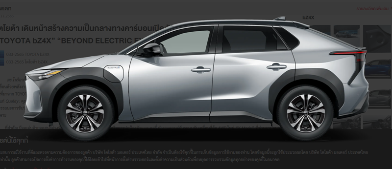 “วันนี้ เรามีความยินดีที่จะแนะนำ TOYOTA bZ4X รถยนต์พลังงานแบตเตอรี่ไฟฟ้า BEV รุ่นแรกที่จำหน่ายภายใต้แบรนด์โตโยต้า รถรุ่นนี้จะเข้าร่วมนโยบายส่งเสริมโครงการผลิตรถยนต์ไฟฟ้า ซึ่งเป็นนโยบายของทางภาครัฐ เพื่อส่งเสริมการใช้รถยนต์ไฟฟ้าอย่างแพร่หลาย”