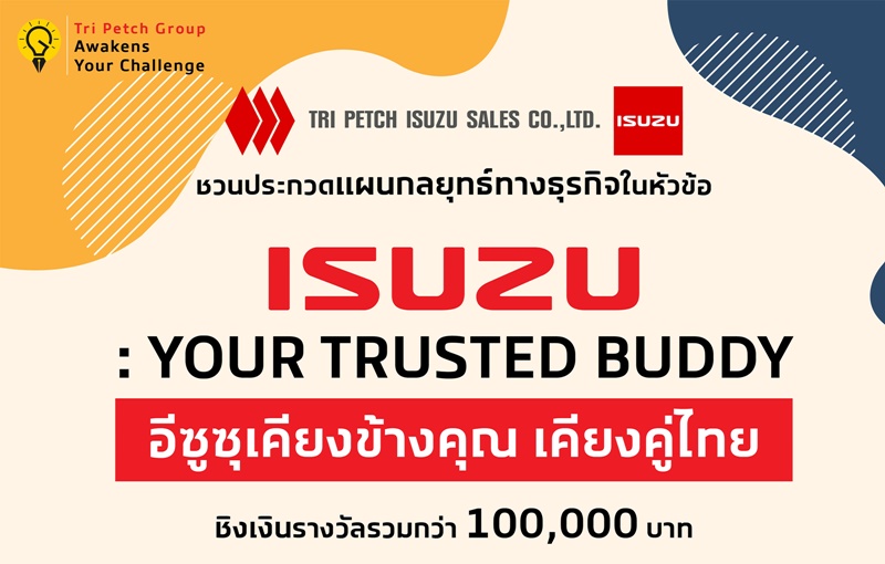 บริษัท ตรีเพชรอีซูซุเซลส์ จำกัด ชวนน้อง ๆ นิสิต นักศึกษา ระดับปริญญาตรี จากสถาบันอุดมศึกษาทั่วประเทศ ร่วมแชร์ไอเดียใหม่ ๆ เพื่อสร้างการจดจำคุณค่าของแบรนด์อีซูซุ ผ่านแผนกลยุทธ์ทางธุรกิจในโครงการ “Tri Petch Group Awakens Your Challenge 2025” ภายใต้หัวข้อ “ISUZU: Your Trusted Buddy อีซูซุเคียงข้างคุณ เคียงคู่ไทย” ชิงเงินรางวัล รวมมูลค่ากว่า 100,000 บาท