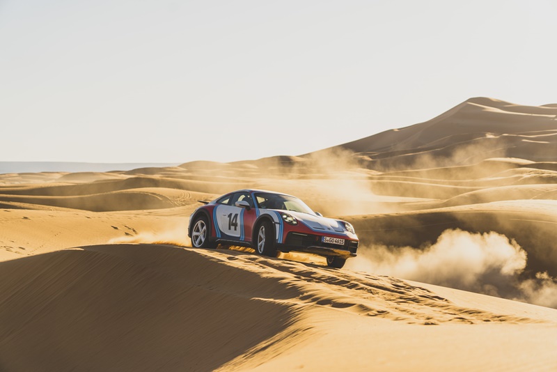 เกียรติประวัติในการแข่งขันความเร็วทางฝุ่นของปอร์เช่ 911 เป็นที่ประจักษ์มาเนิ่นนานด้วยบทบาทของราชันย์แห่งท้องถนน เริ่มตั้งแต่ชัยชนะครั้งแรกในรายการ Paris-Dakar Rally ปี 1984 ความกร้าวแกร่งที่แสดงให้เห็นระหว่างลงสนามรายการ East African Safari Rally ในยุค 1970 นั้นยังคงเป็นความทรงจำที่ได้รับการยกย่องกล่าวขาน ว่าปอร์เช่นำเสนออุปกรณ์ตกแต่งเพิ่มเติม Rallye Design Package สำหรับปอร์เช่ 911 Dakar สะท้อนภาพลักษณ์อันชัดเจนของรถแข่งตัวแรงเจ้าของแชมป์ปี 1984 โดยสามารถเลือก wraps รถสปอร์ตปอร์เช่ 911 Dakar ได้ถึง 3 สไตล์ตามรูปแบบการตกแต่งของรถที่เข้าร่วมการแข่งขัน East African Safari ในปี 1971, 1974 และ 1978
