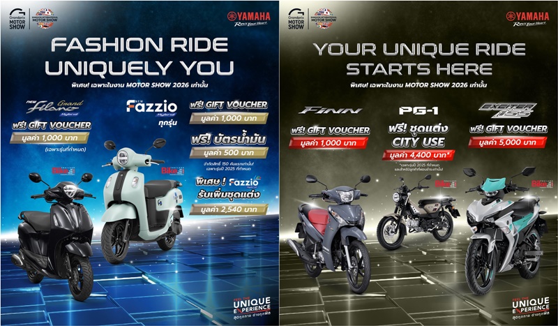 • YAMAHA FAZZIO (สีใหม่ 2026) รับส่วนลด 1,000 บาท + ชุดแต่งมูลค่า 2,540 บาท (จำกัด 200 คันแรก)