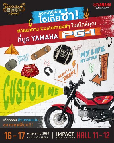 #Yamaha อยากชวนเพื่อนๆ ออกไปหา passion แต่ง Yamaha PG-1 ด้วยกันที่งาน Bangkok HotRod Custom Show งานที่รวบรวมมอเตอร์ไซค์คัสตอมระดับโลกจากสำนักแต่งระดับ Top มารวมไว้ที่เดียว